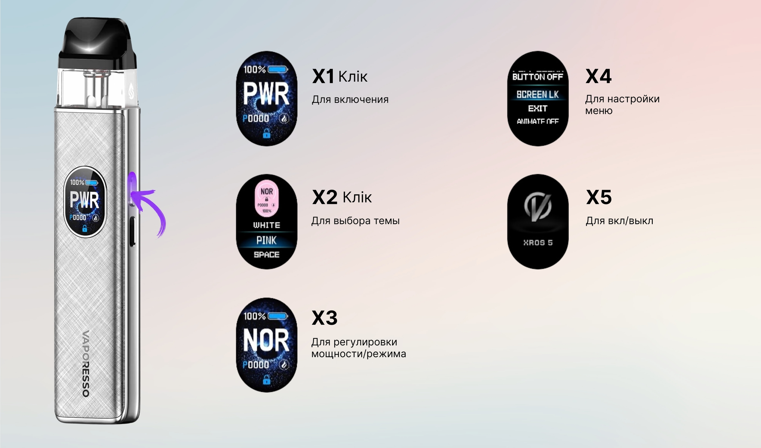 Чтобы активировать XROS 5, нажмите кнопку один раз.
